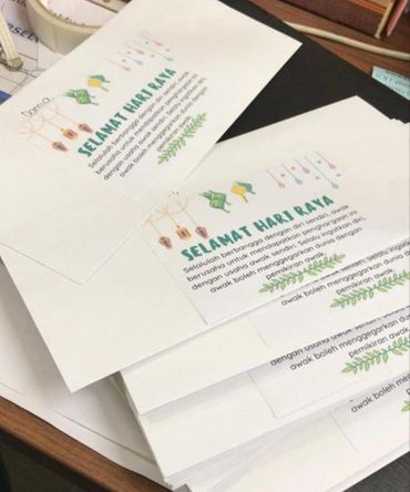 The plan is to engage school children to do their own Raya card and we help to sell those cards and the money goes to those students as their own duit Raya.
