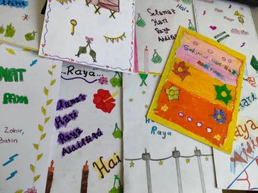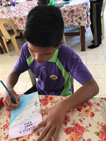 With Assha's help, the students come up with beautiful hand made cards with beautiful wishes. We do our part and when they received their duit raya, the card sales money, they themselves and their parents were made aware of the effort and both are very happy with this outstanding idea.